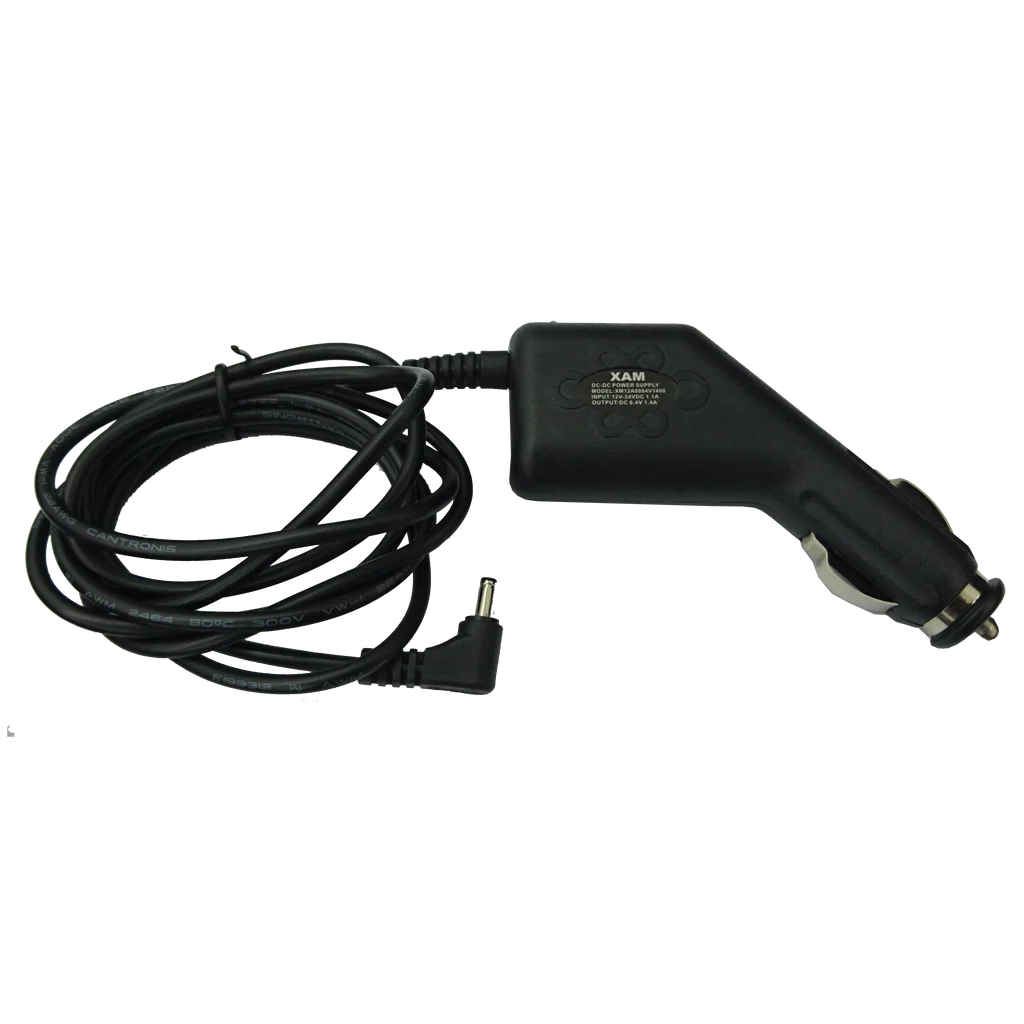Car charger with cigarette lighter plug for our 7.4 V batteries.