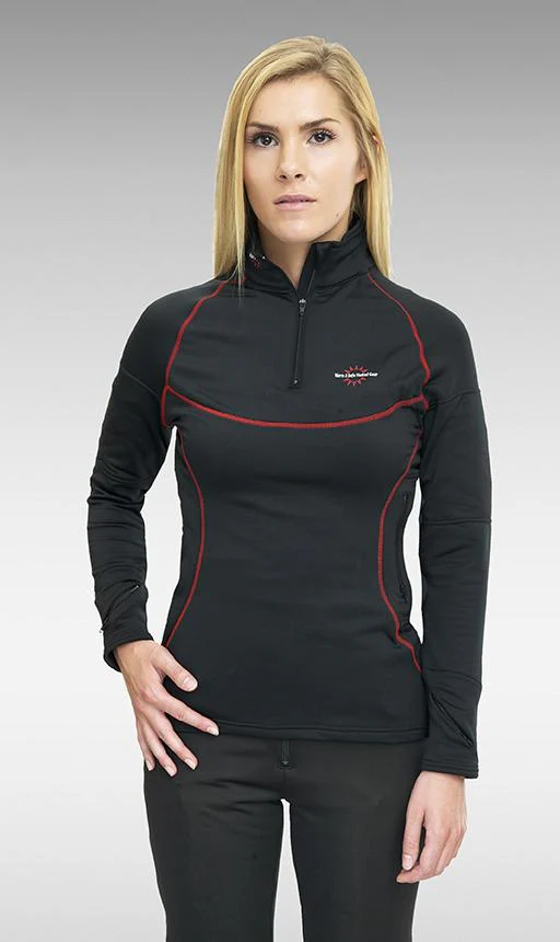 This version of the Heat Layer has 9 heat zones: two panels on the chest, two in the upper arms, a heated collar, two panels on the lower back and two panels on the sides. It also has connections at the sleeve ends for gloves or glove liners.