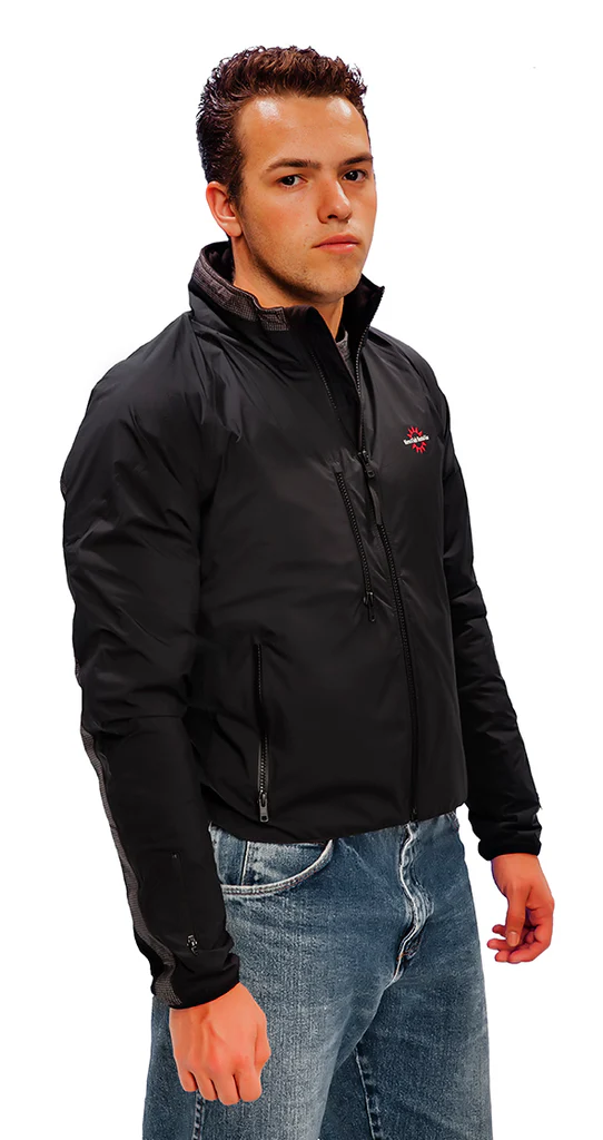 Funktionaliteten är genomtänkt i varje detalj: anslutningar vid ärmsluten för handskar eller handskfoder, ficka-i-ficka för fjärrkontroll till Heat-troller, samt stöd för både enkel och dubbel controller. Bröst- och handfickor med dragkedja ger praktisk förvaring.