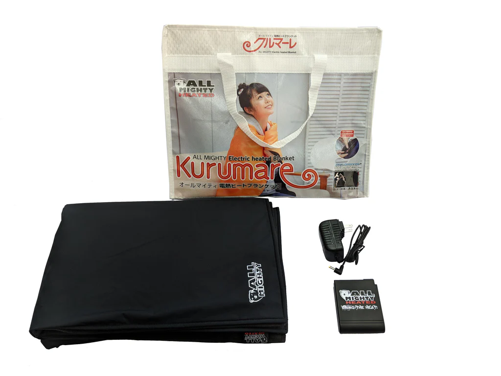 Kurumare är en portabel, batteridriven värmefilt. Den värmer dig på några sekunder och har inbyggda tryckknappar som gör att den kan anpassas till kroppen i flera olika positioner. Storleken på Kurumare är 110 cm × 80 cm. Yttertyget är vattentätt, slitstarkt, handtvättbart och extremt lätt. Det är helt enkelt den mest mångsidiga, högteknologiska och portabla värmefilt som någonsin har designats.